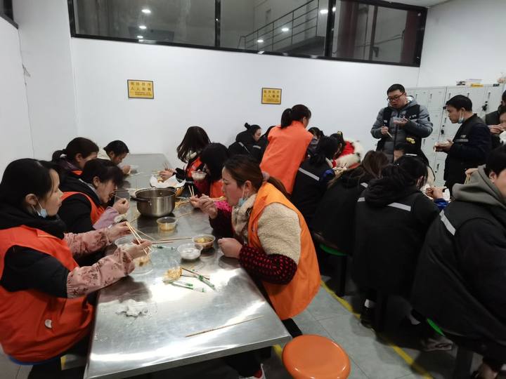 活动当天,人事部小姐姐早早便忙碌起来了,布置桌子,摆好电饭锅,加好水,煮起了汤圆,一锅锅圆圆的汤圆在锅里沸腾。