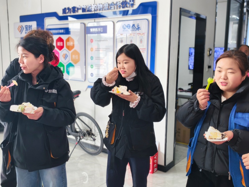 大家围坐在一起,一边品尝着香甜的蛋糕与新鲜的水果,一边畅谈工作中的趣事与生活里的美好。行政部精心准备的零食大礼包,也成为了现场的“抢手好物”,大家分享着美食,传递着快乐,温情在彼此之间悄然传递。